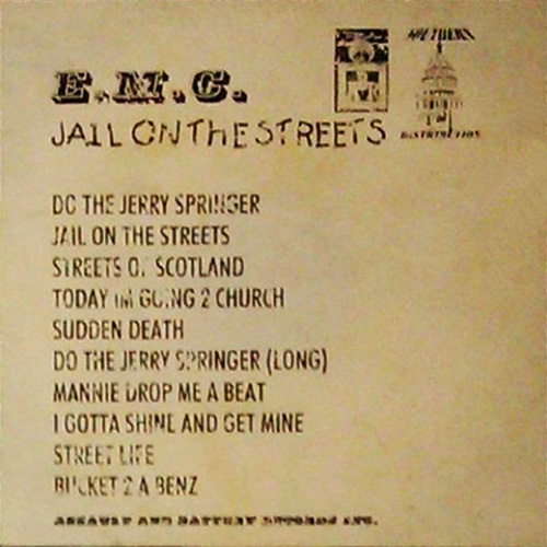 JAIL ON THE STREETS (Do The Jerry Springer / Jail On The Streets / Streets Of Scotland / Today I'm Going 2 Church / Sudden Death / Do The Jerry Springer (Long) / Mannie Drop Me A Beat / I Gotta Shine And Get Mine / Street Life / Bucket 2 A Benz) |
