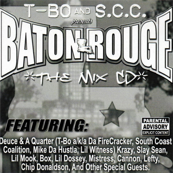 T-BO AND S.C.C. PRESENTS BATON ROUGE THE MIX CD (Intro (B-Rock, T-Bo) / Baton Rouge (S.C.C., T-Bo, Mike Da Hustla, Lil Witness) / Weekends (T-Bo, Mike Da Hustla, B-Rock) / Strugglin' (B-Rock, Lil Witness, Lefty) / Fuck With Us (Mike Da Hustla, T-Bo, S.C.C) / Thuggin' (Cannon, T-Bo, Krazy, Slay Sean) / Cop Skit #1 (No Artist) / I Don't Give A Fuck (Lil Witness, B-Rock) / Do What Ya' Do (Mistress, Mista Matt, Box) / Gone Get The Fuck On (T-Bo, B-Rock) / Cop Skit #2 (No Artist) / Rap Hustle (Lil Dossey, Lil Mook) / Ain't What It Seems (Lil Witness, T-Bo, Mike Da Hustla, B-Rock) / Do Ya' Thang (Mike Da Hustla, T-Bo) / Officer Pete Peterman (Skit) (No Artist) / If They Act Hard (Lefty, B-Rock) / We Still Ain't Shit (Deuce & A Quarter) / How Many Want To Roll? (Club Mix) (T-Bo) / Weekends (Screwed Version) (T-Bo, Mike Da Hustla, B-Rock) / Baton Rouge (Screwed Version) (S.C.C., T-Bo, Mike Da Hustla, Lil Witness) / Chip Donaldson (Skit) (Chip Donaldson)) |