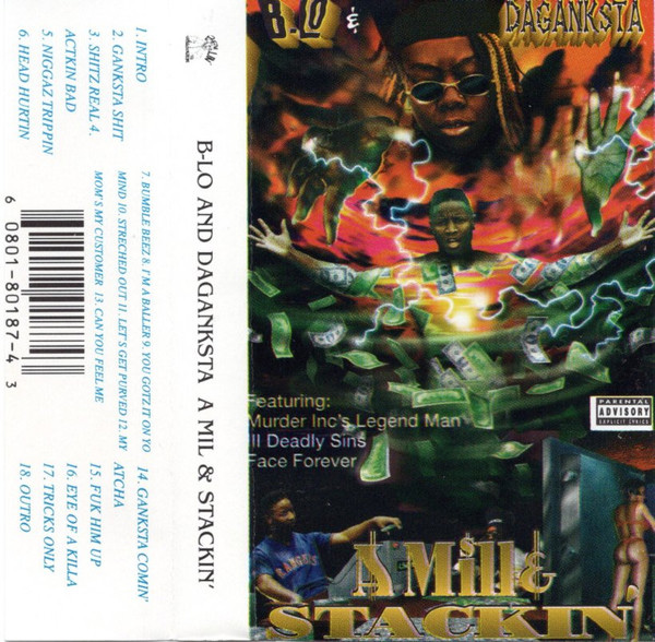 A MILL & STACKIN’ (Intro / Ganksta Shit / Shitz Real / Actkin' Badd / Niggaz Trippin / Head Hurtin / Bumble Beez / I'm A Baller / You Gotz It On Yo Mind / Streched Out / Let's Get Purved / My Mom's My Customer / Can You Feel Me / Ganksta Comin' Atcha / Fuk Him Up / Eye Of A Killa / Tricks Only / Outro) |